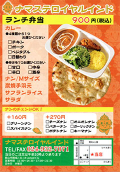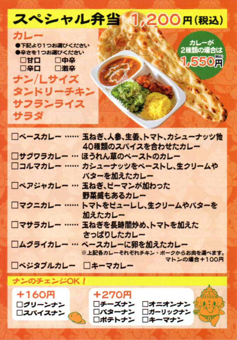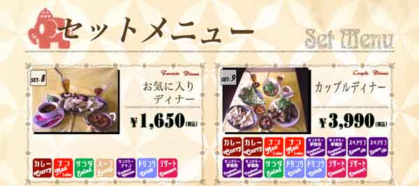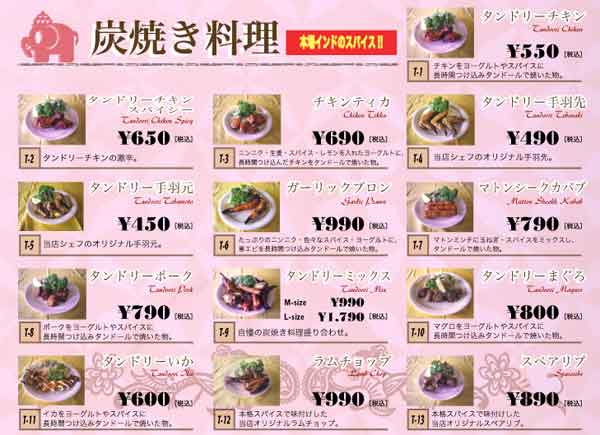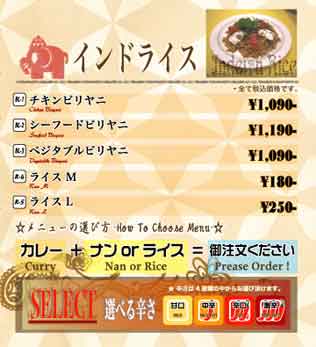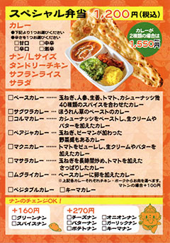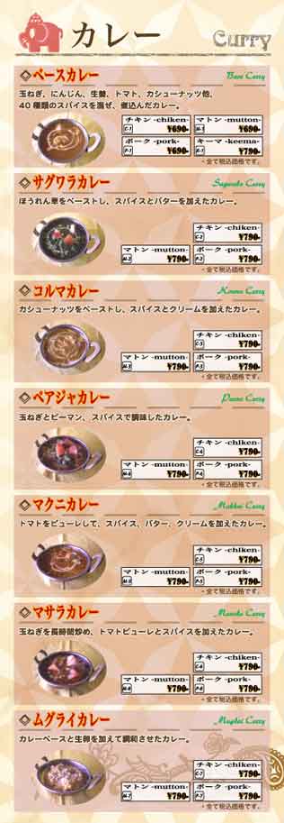 このほかにランチタイムメニューやナン・ドリンク、また季節のメニューなどたくさん揃ってます。